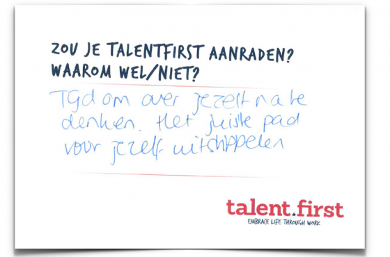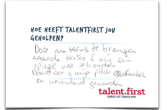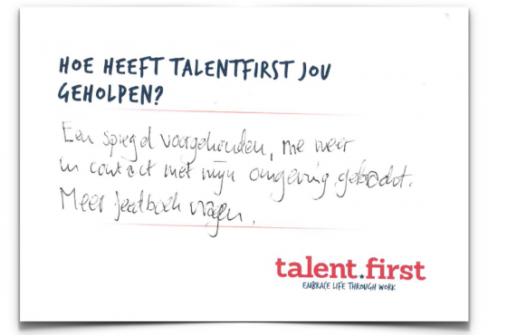 De tijd die ik met jullie heb doorgebracht, heeft mijn leven veranderd. Het is verbazingwekkend hoe alleen al het echt erkennen van wat er in mijn wereld gaande is, alles veranderde. Binnen een maand verliet ik het team waar ik in zat en maakte ik grote veranderingen in mijn inzet voor werk en wat ik van mensen verwacht.